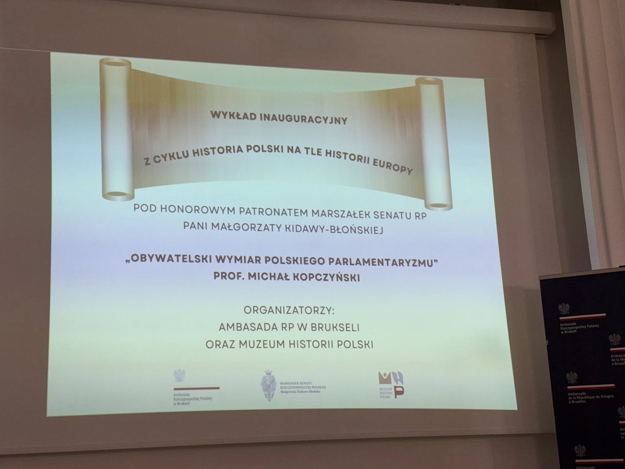 Zapraszamy do zapoznania się z wykładem prof. dr. hab. Michała Kopczyńskiego „Obywatelski wymiar polskiego parlamentaryzmu”, inaugurującym cykl wystąpień zatytułowany „Historia Polski na tle historii Europy”. Związany z Wydziałem Historii Uniwersytetu Warszawskiego i Muzeum Historii Polski uczony, przemawiając w siedzibie Ambasady RP w Brukseli 13 grudnia 2025 roku, przystępnie opowiada o barwnych czasach Rzeczpospolitej szlacheckiej, stanowiących zaczątek współczesnego polskiego parlamentaryzmu, i wyjaśnia, jak rodzimy system politycznych tamtych czasów wyglądał na tle innych państw Europy.
