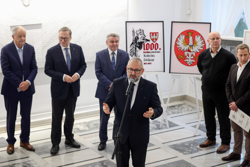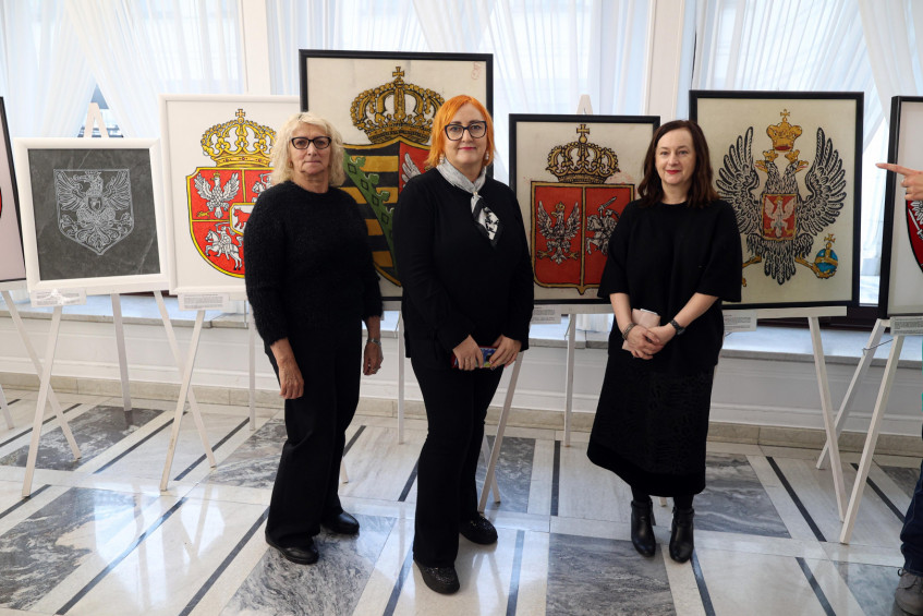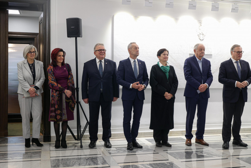 W otwarciu wystawy uczestniczyli m.in. senatorowie, minister Ewa Polkowska, szef Kancelarii Senatu oraz osoby zaangażowane w przygotowanie ekspozycji.